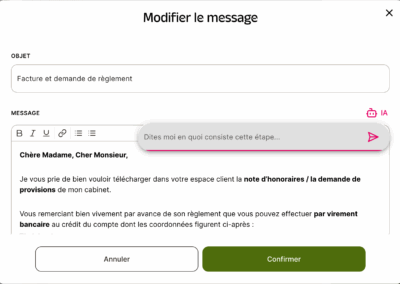 Gérer des discussions avec les compagnies d’assurance peut souvent se transformer en bras de fer. AppliCab vous aide à structurer ces négociations grâce à des outils pratiques comme des modèles de communication prédéfinis, que vous pouvez ajuster selon les besoins. Plus de perte de temps à rédiger des messages répétitifs ! Avec AppliCab, vous gardez une longueur d’avance, et vos clients bénéficient d’une meilleure réactivité.